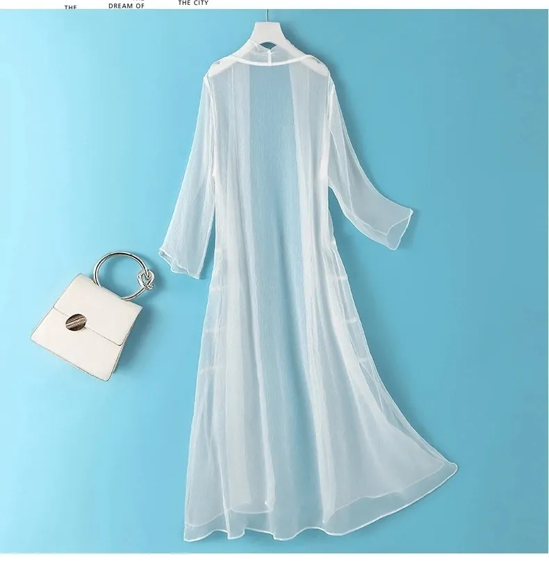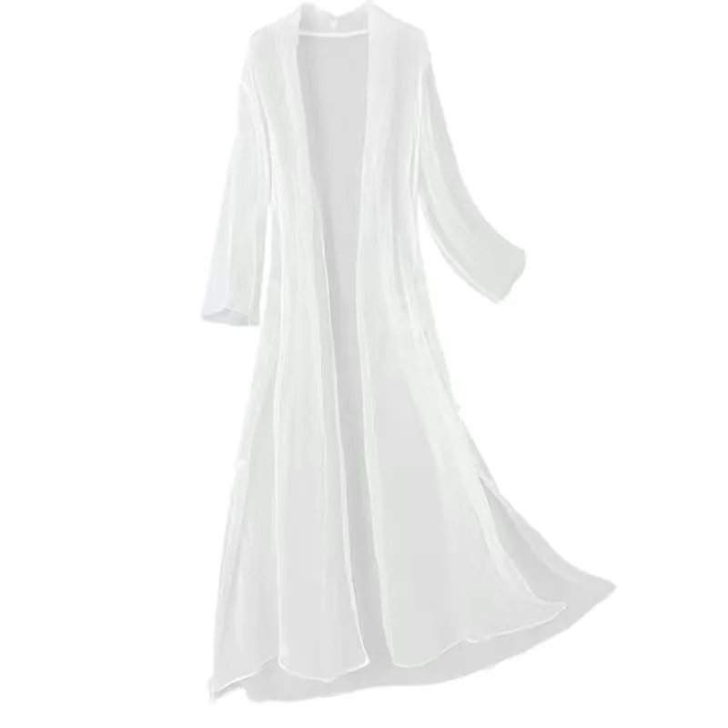 衣都精品- 新款薄款收腰長袖開衫雪紡連衣裙