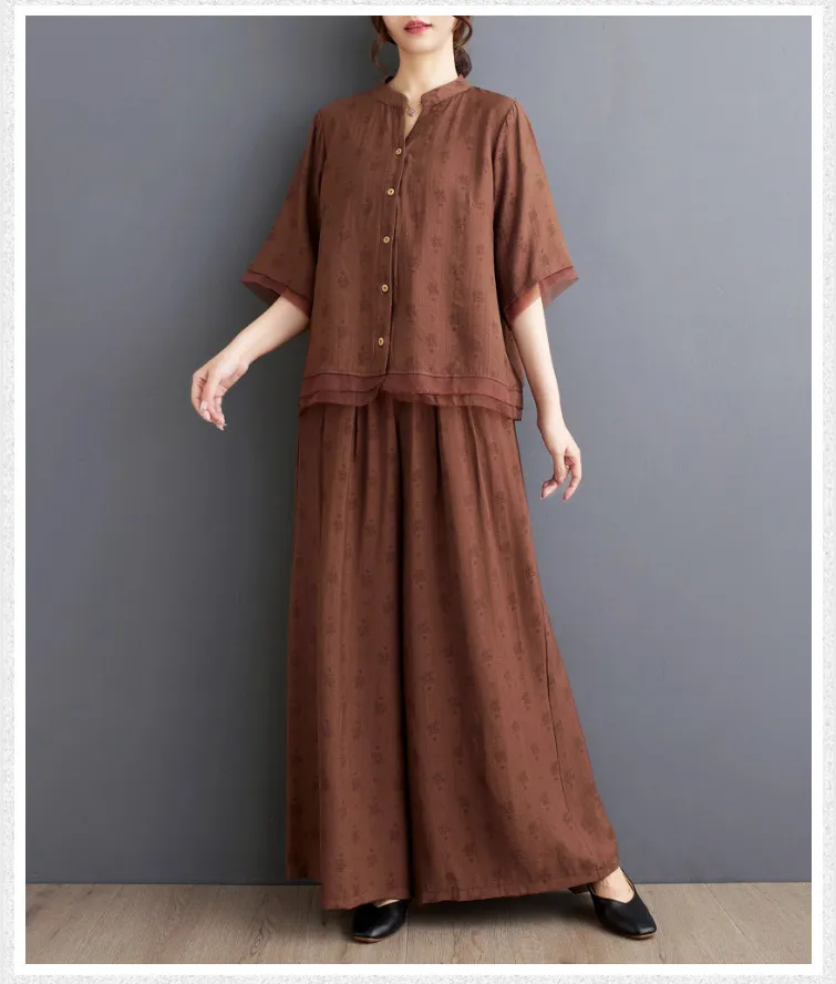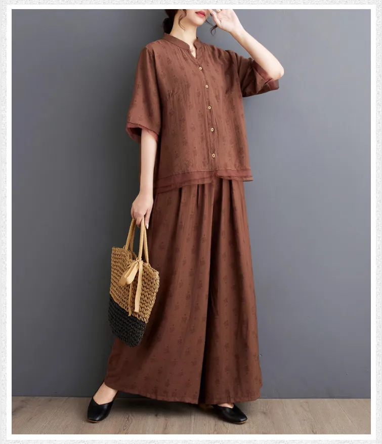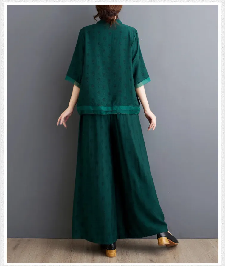 衣都精品- 新款文藝大碼寬鬆時尚印花顯瘦兩件式套裝