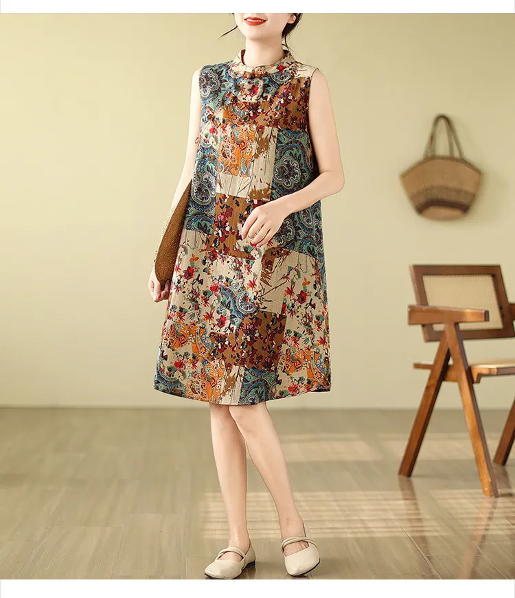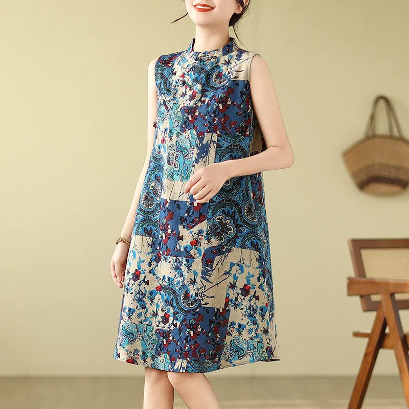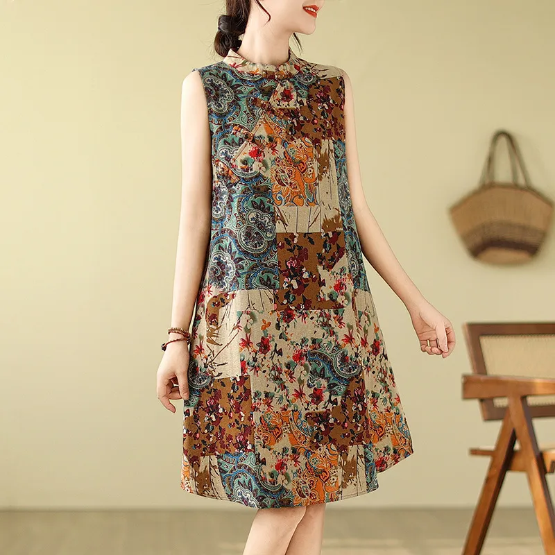 衣都精品- 新款復古文藝中式改良旗袍寬鬆中長款連衣裙