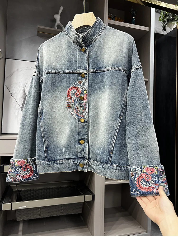 衣都精品- 新款時尚百搭中國風刺繡鳳凰牛仔外套