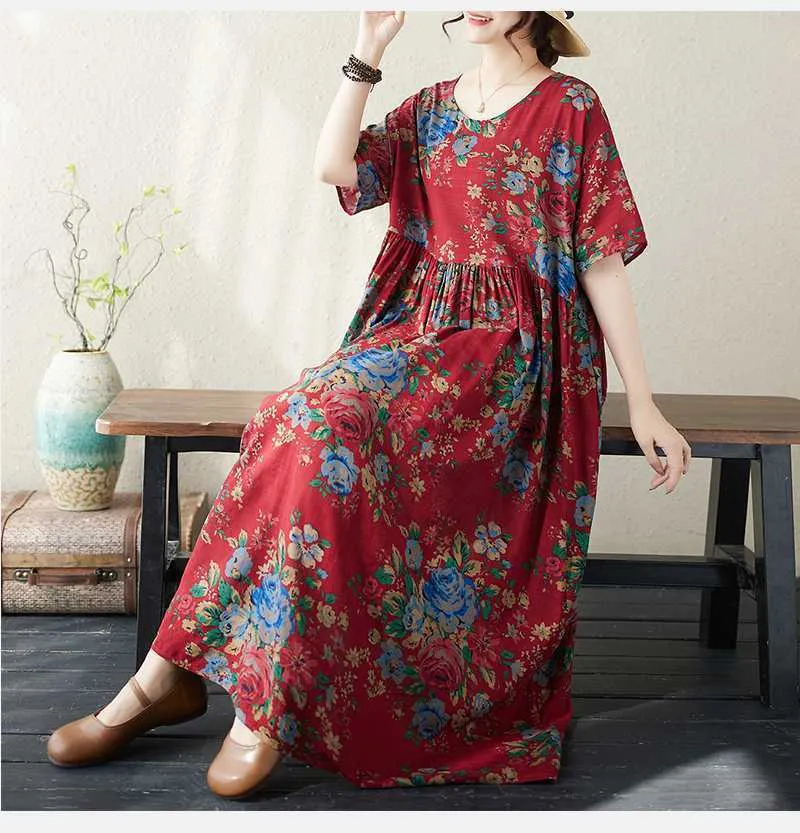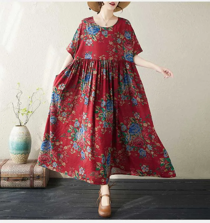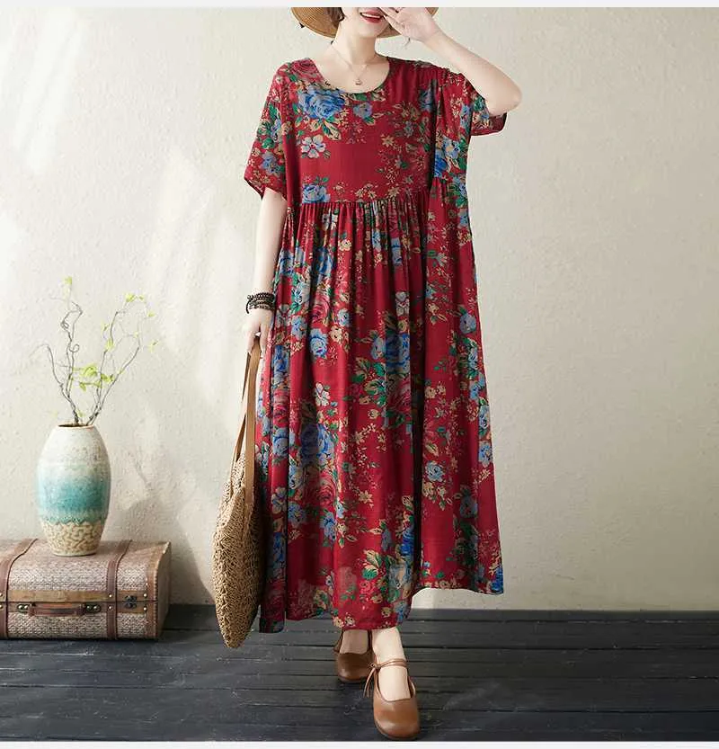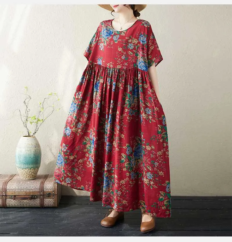 衣都精品- 新款韓版寬鬆加大短袖圓領印花連衣裙