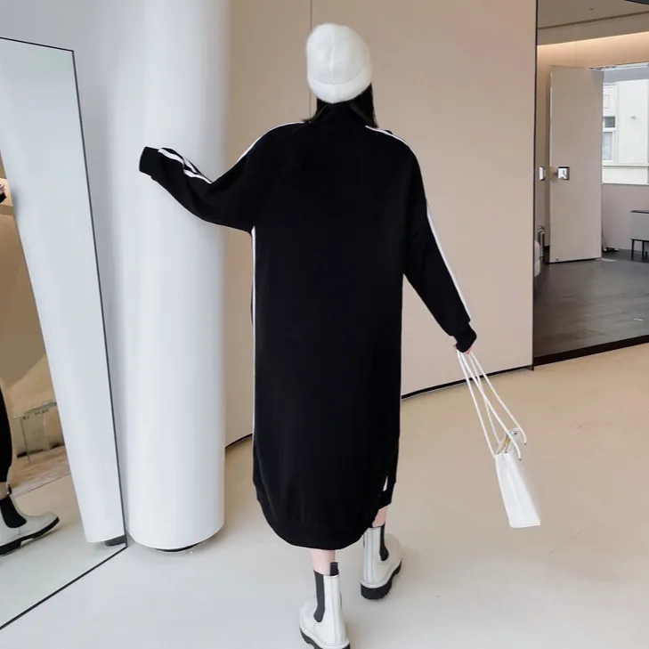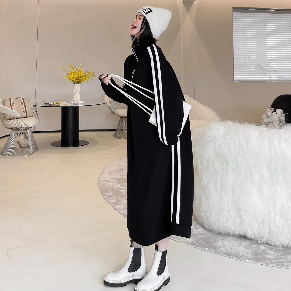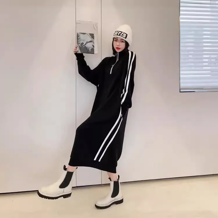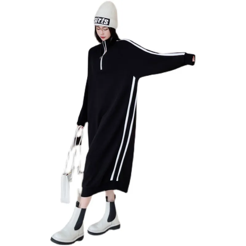 衣都精品- 新款韓版拉鍊立領拼接織帶大碼連衣裙