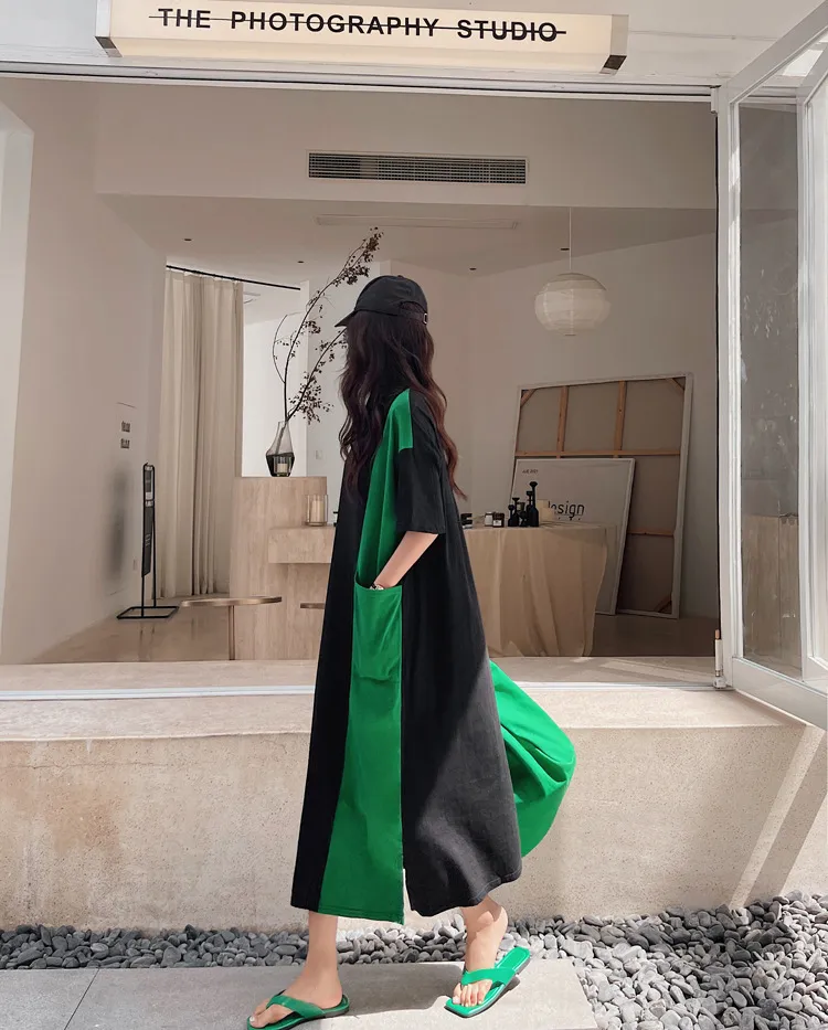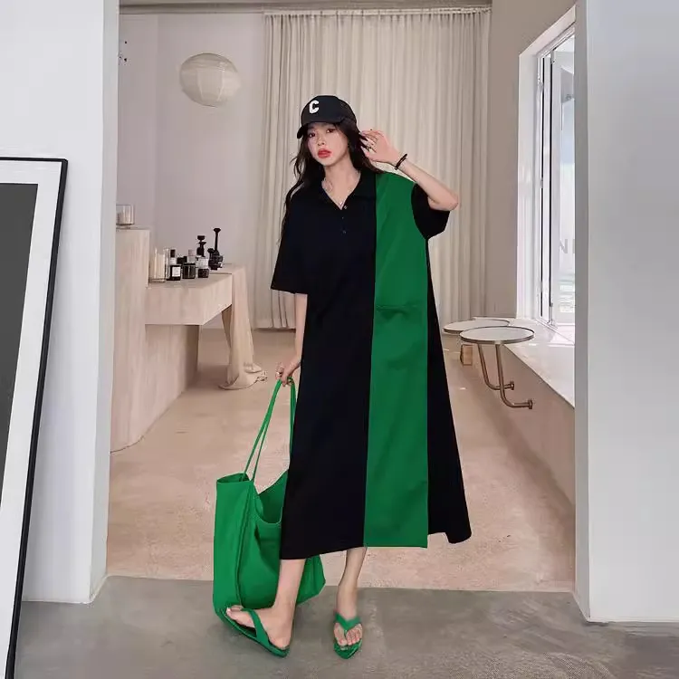 衣都精品- 新款大碼拼接撞色設計POLO領寬鬆連衣裙