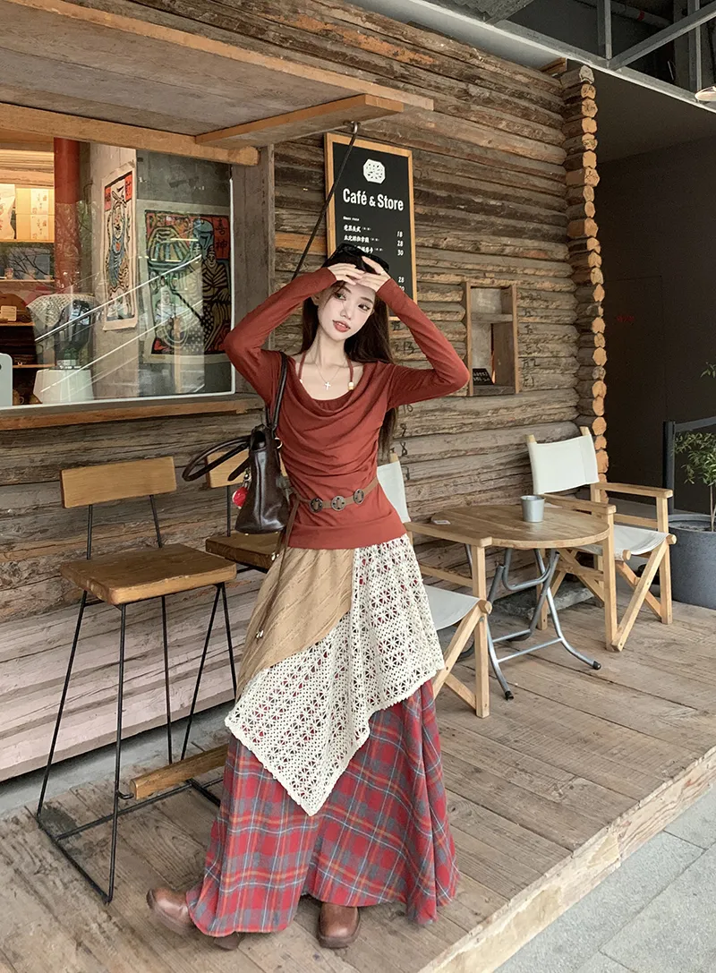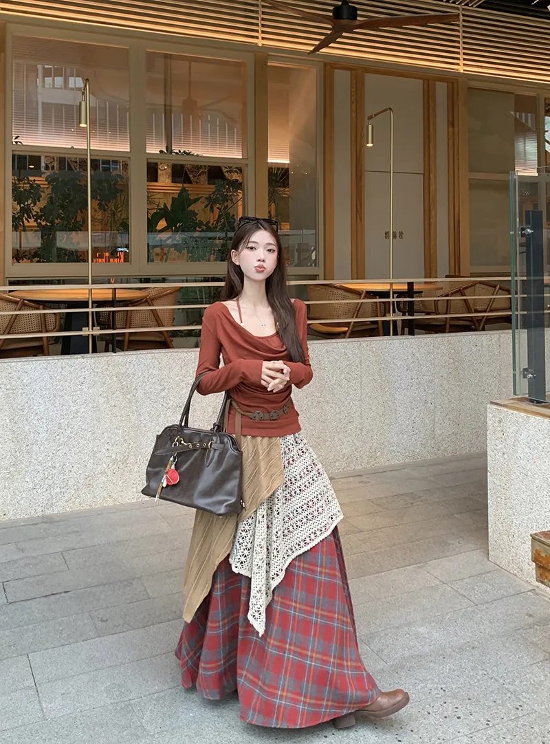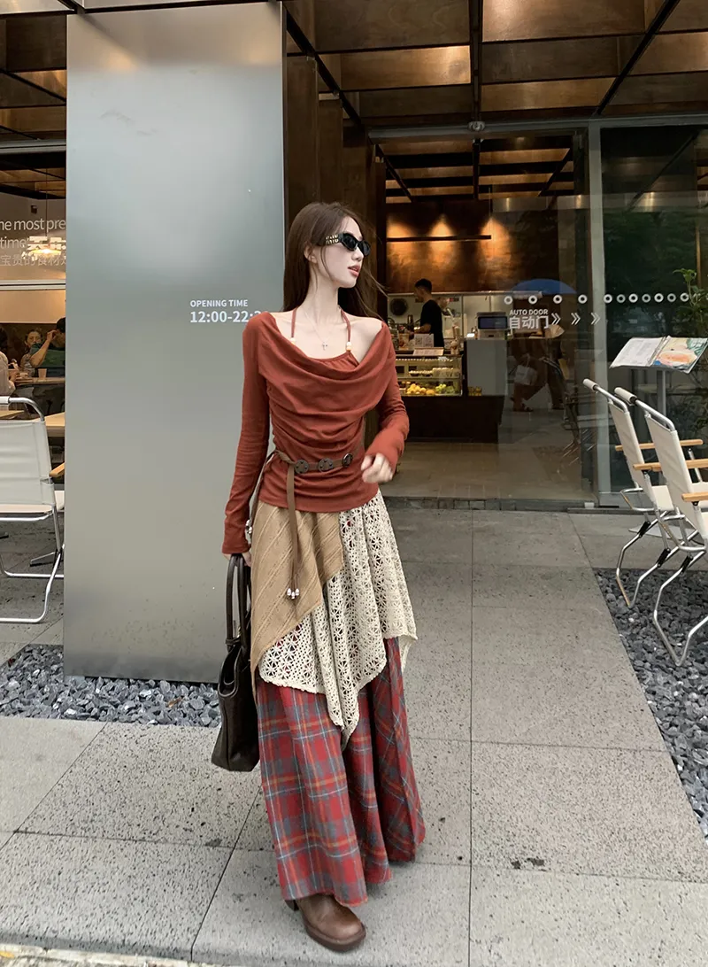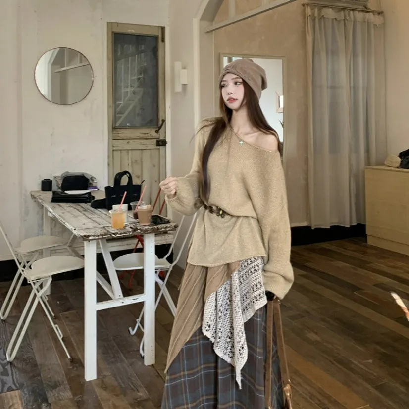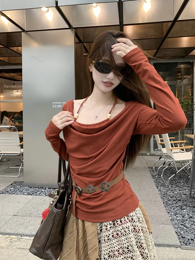 衣都精品- 新款時尚百搭蕩領長袖寬鬆上衣