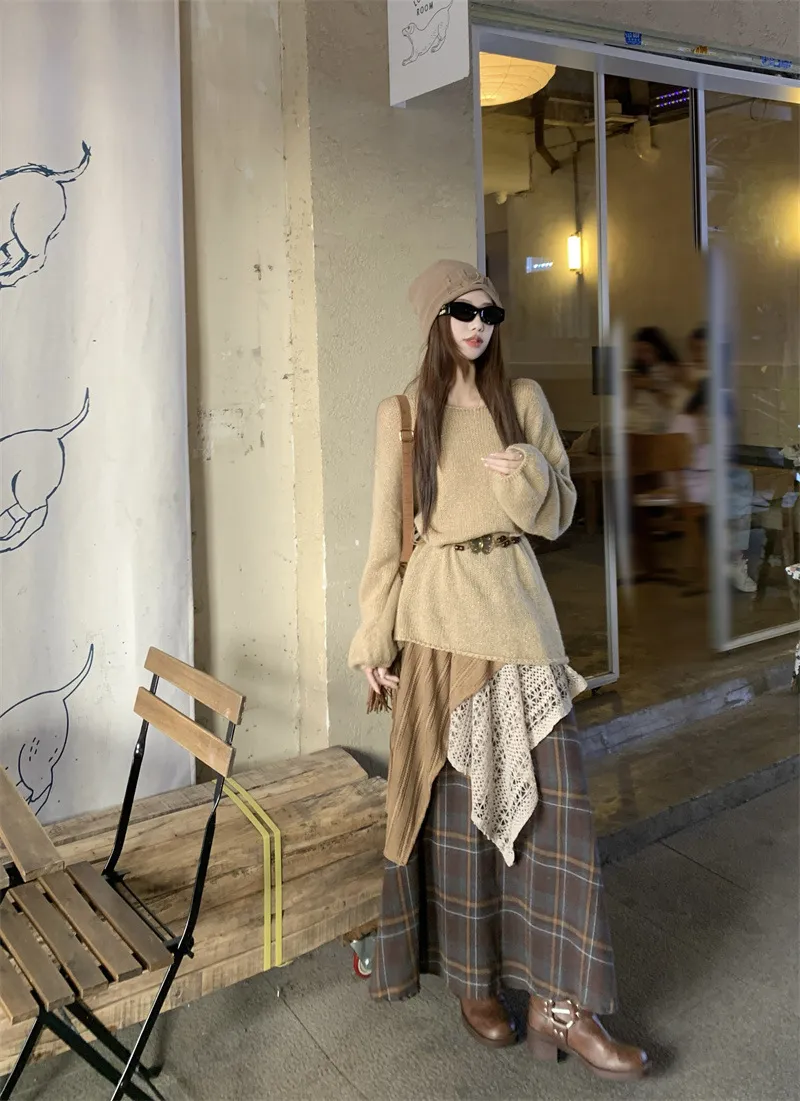 衣都精品- 新款長袖拼色薄款套頭針織衫寬鬆上衣