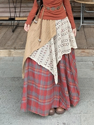 衣都精品- 新款復古拼色格子半身裙