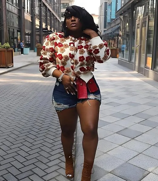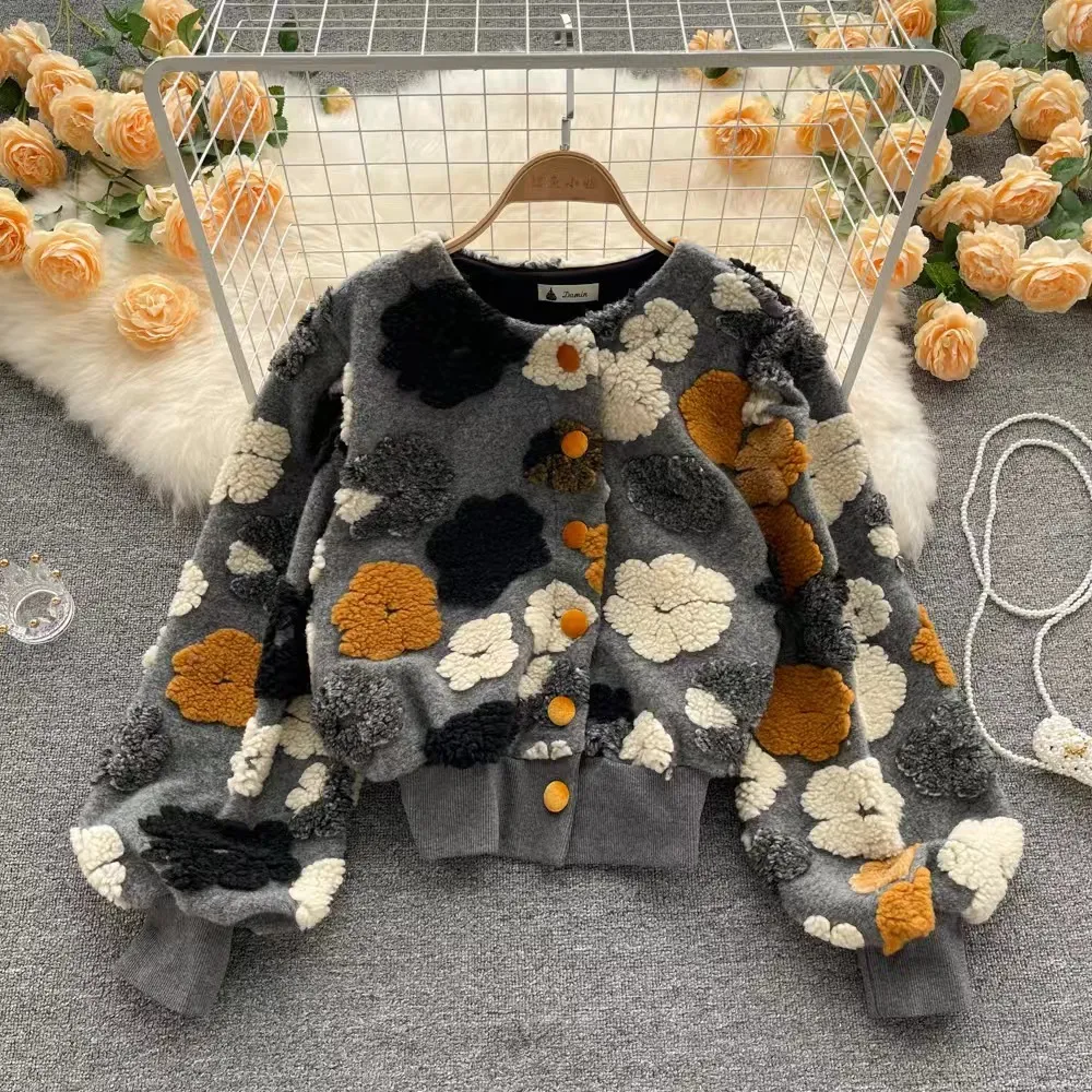 衣都精品- 新款復古立體花朵氣質寬鬆拉鍊開襟外套