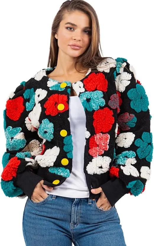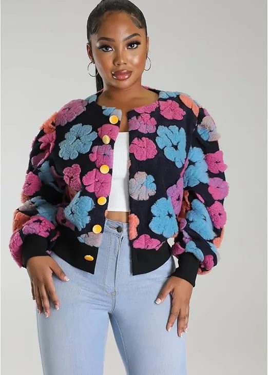 衣都精品- 新款跨境歐美時尚提花毛絨外套
