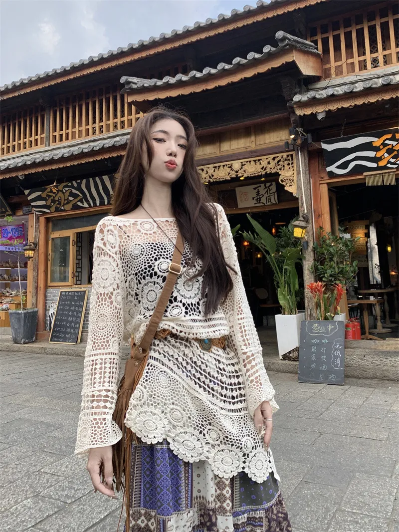 衣都精品- 新款波西米亞度假風高腰A字碎花半身裙