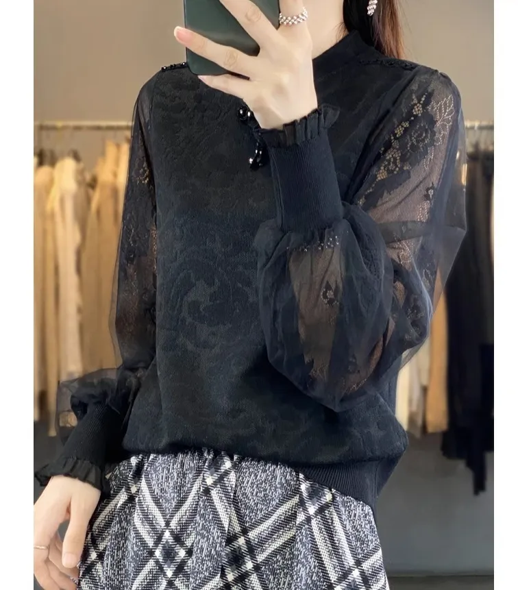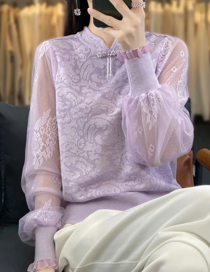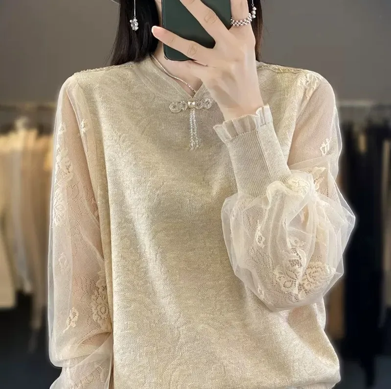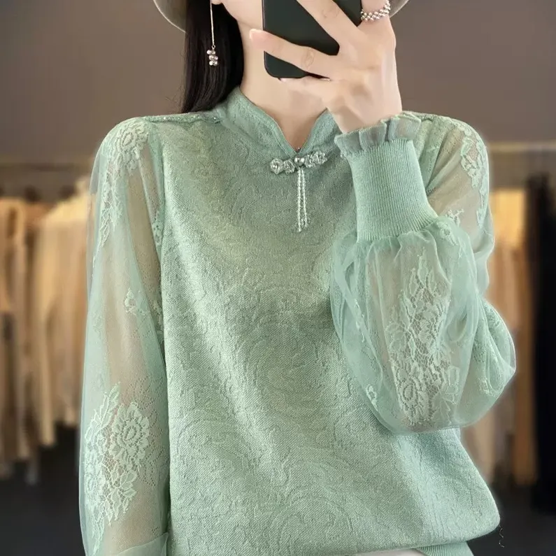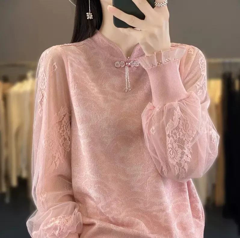 衣都精品- 新款優雅氣質中式復古針織套頭立領上衣