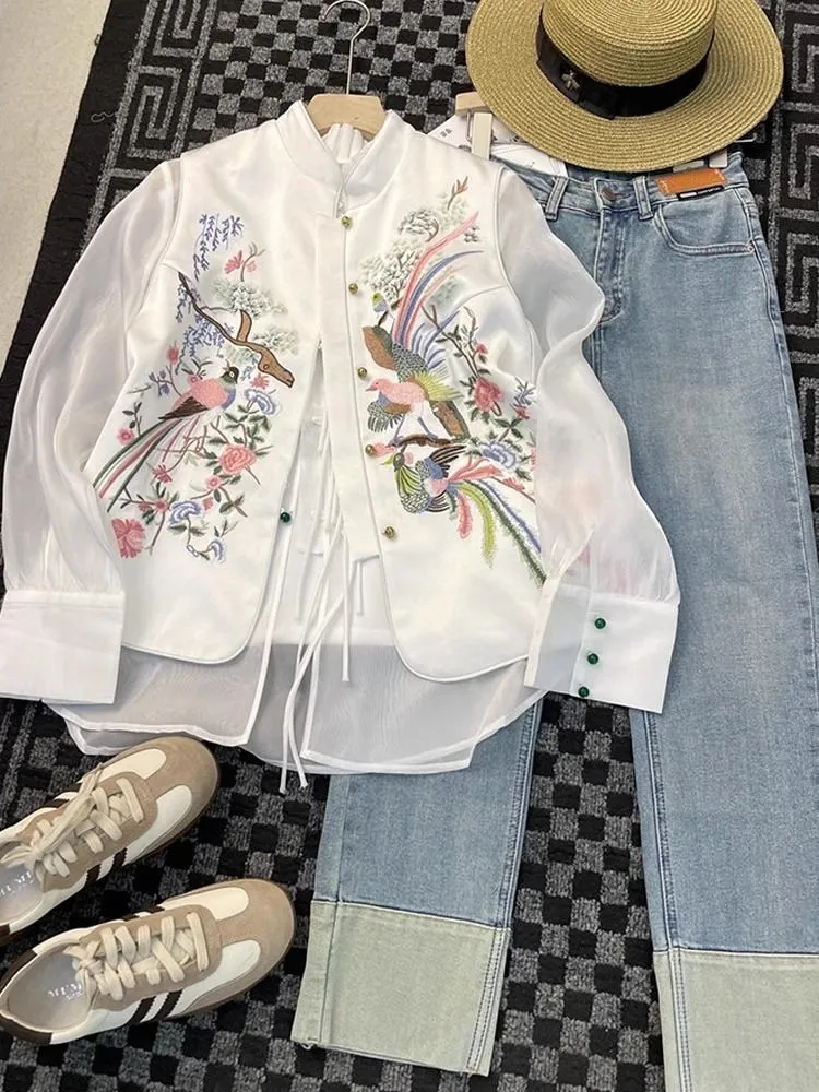 衣都精品- 新款優雅氣質中式刺繡兩件式套裝