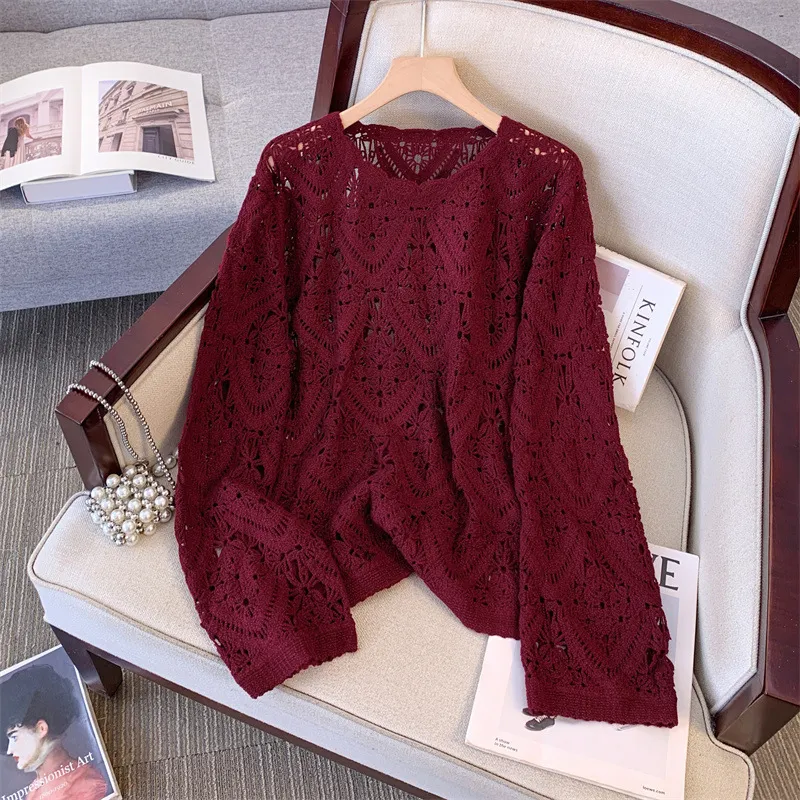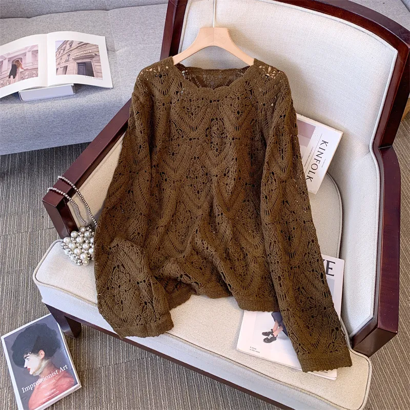 衣都精品- 新款鏤空長袖針織寬鬆防曬上衣
