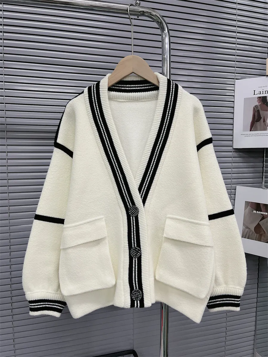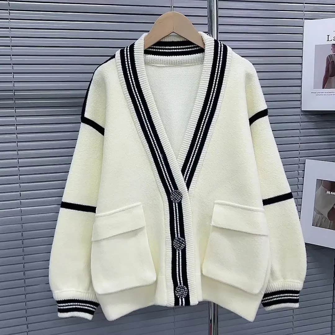 衣都精品- 新款高級感撞色仿水貂絨毛衣外套