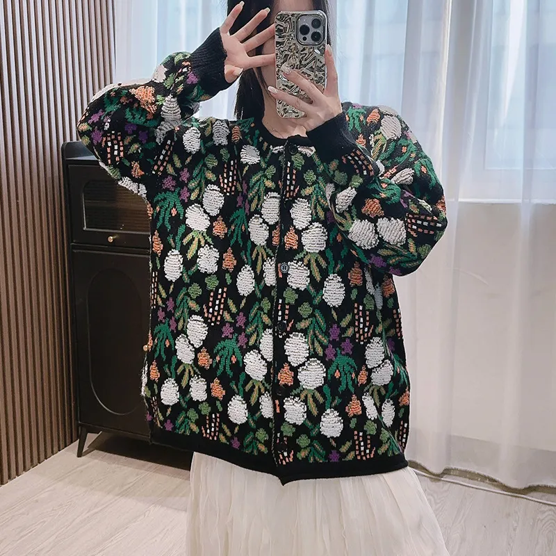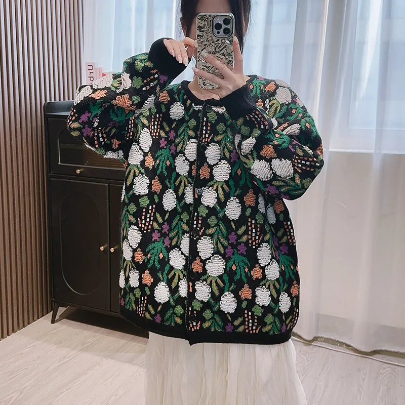 衣都精品- 新款慵懶風復古森系提花毛衣外套