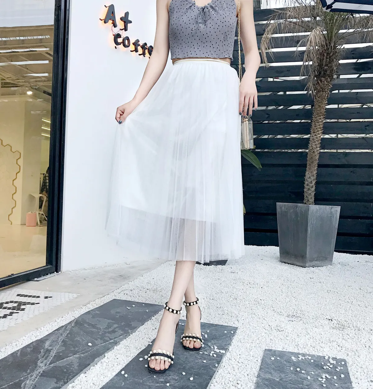 衣都精品- 新款時尚收腰顯瘦網紗百褶半身裙