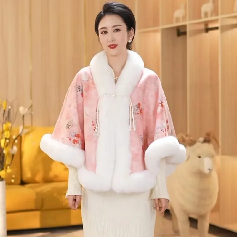 衣都精品- 新款百搭仿獺兔毛領披肩斗篷外套
