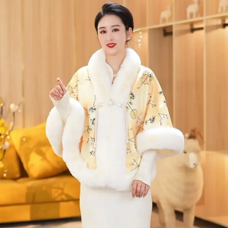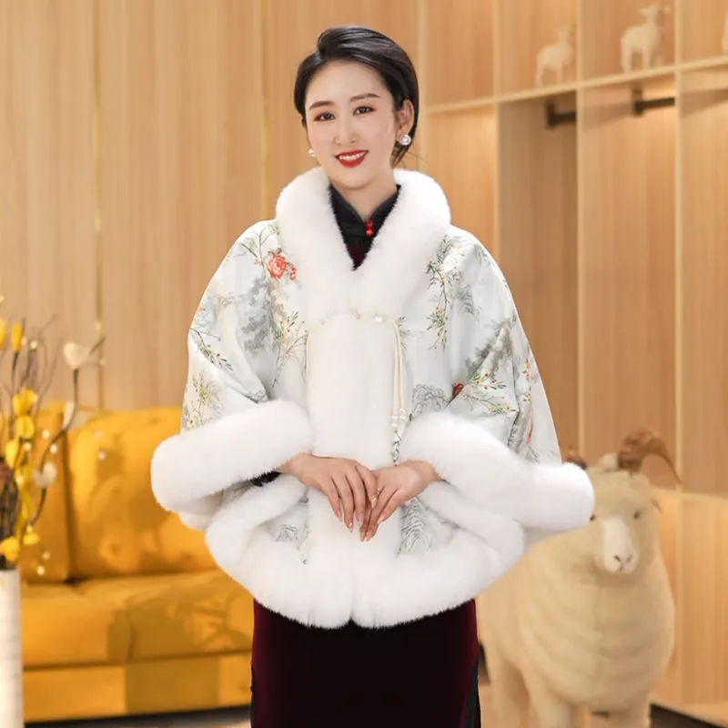衣都精品- 新款中國風毛領優雅氣質披肩外套