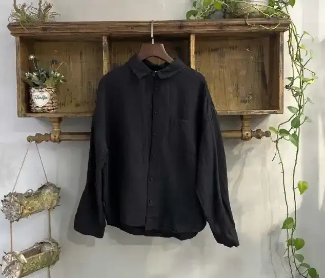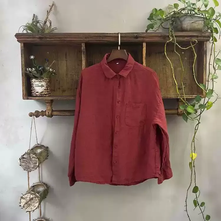 衣都精品- 新款復古亞麻純色寬鬆顯瘦長袖上衣