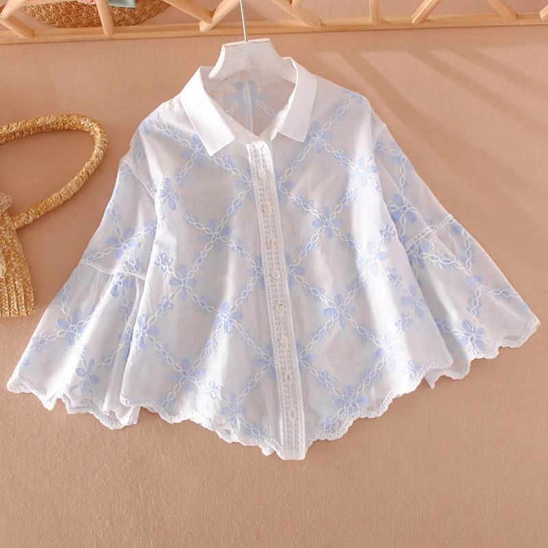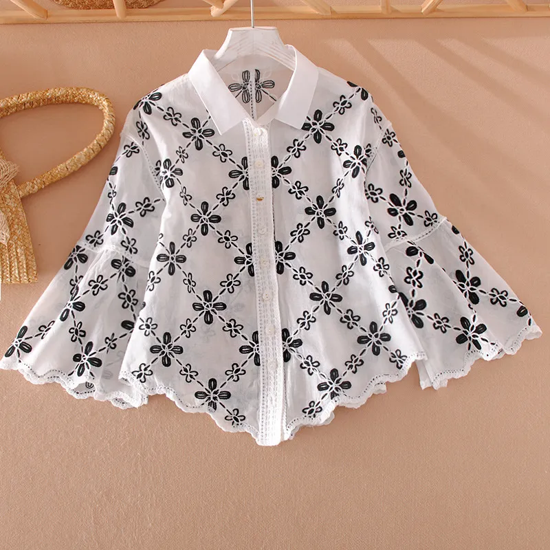 衣都精品- 新款溫柔風刺繡立體提花蕾絲上衣