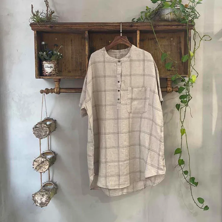 衣都精品- 新款文藝復古格子中長款寬鬆上衣
