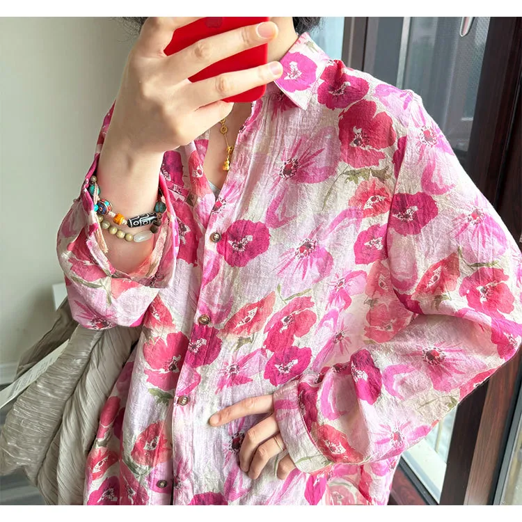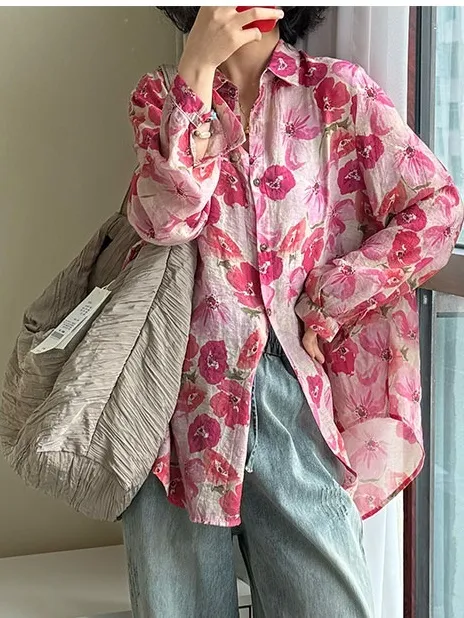 衣都精品- 新款文藝明媚印花長袖寬鬆上衣