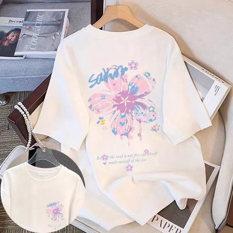 衣都精品- 新款寬鬆休閒百搭圓領短袖上衣