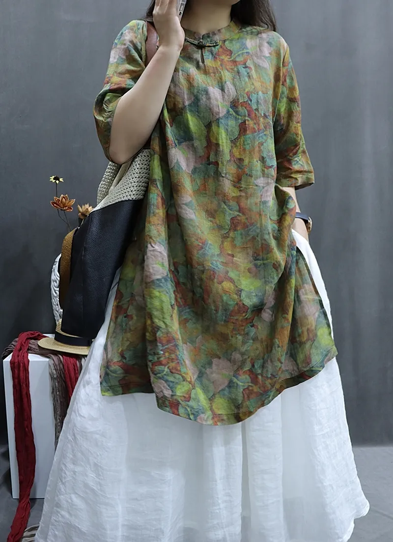衣都精品- 新款立領盤扣短袖中長款上衣