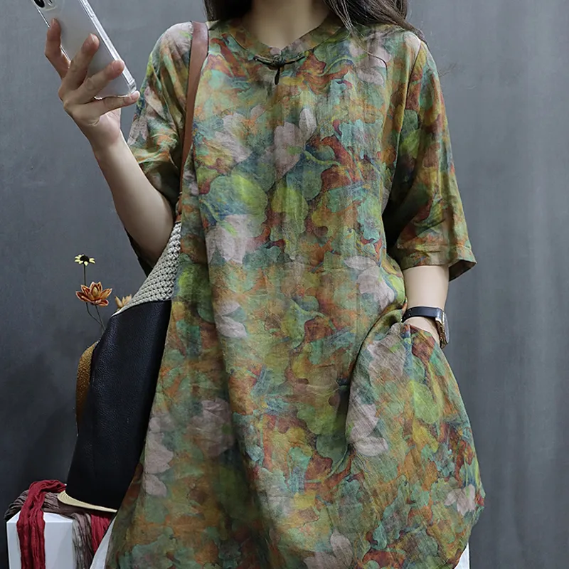 衣都精品- 新款寬鬆文藝大碼顯瘦時尚印花連衣裙