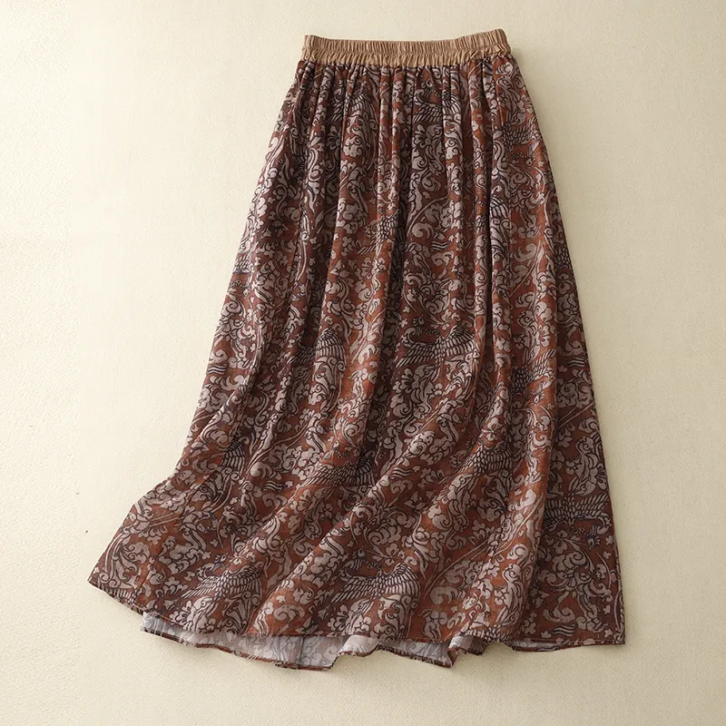 衣都精品- 新款復古碎花鬆緊腰薄款半身裙