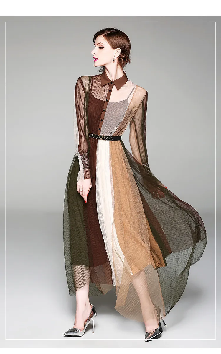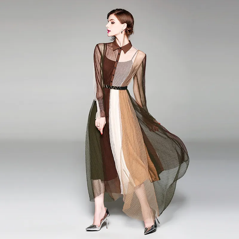 衣都精品- 新款氣質優雅修身撞色收腰連衣裙