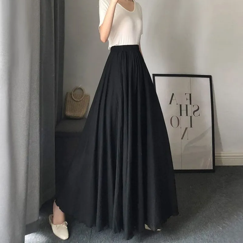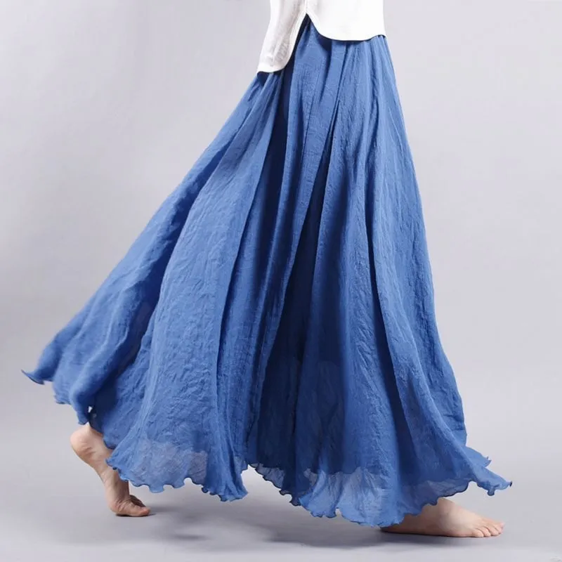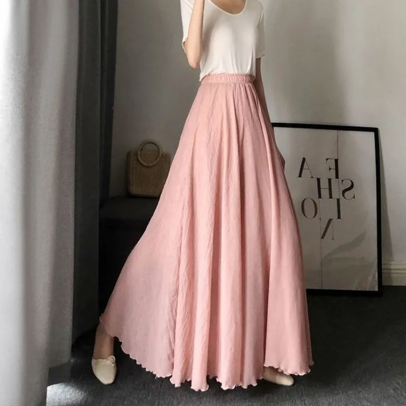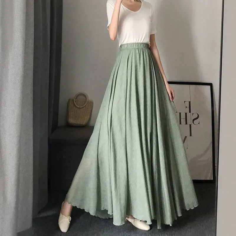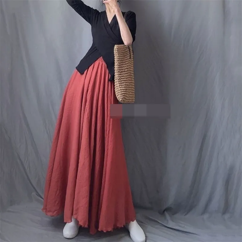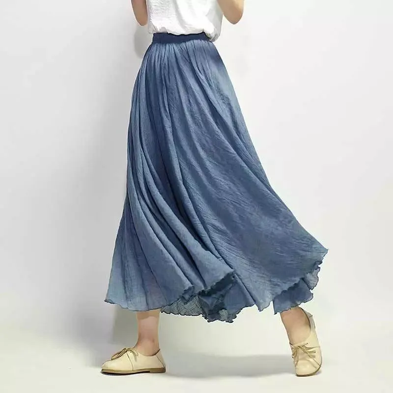 衣都精品- 新款雙層棉麻不透鬆緊腰半身裙