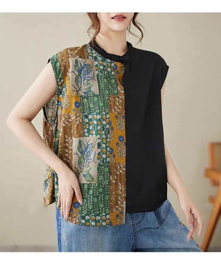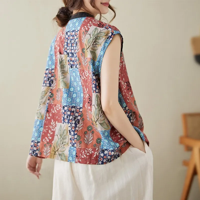 衣都精品- 新款復古圓領套頭無袖透氣上衣