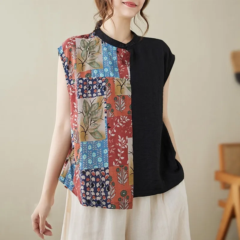 衣都精品- 新款中式國風盤扣立領花色上衣