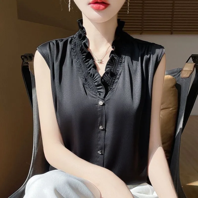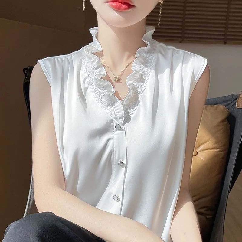 衣都精品- 新款法式無袖荷葉高級感背心上衣