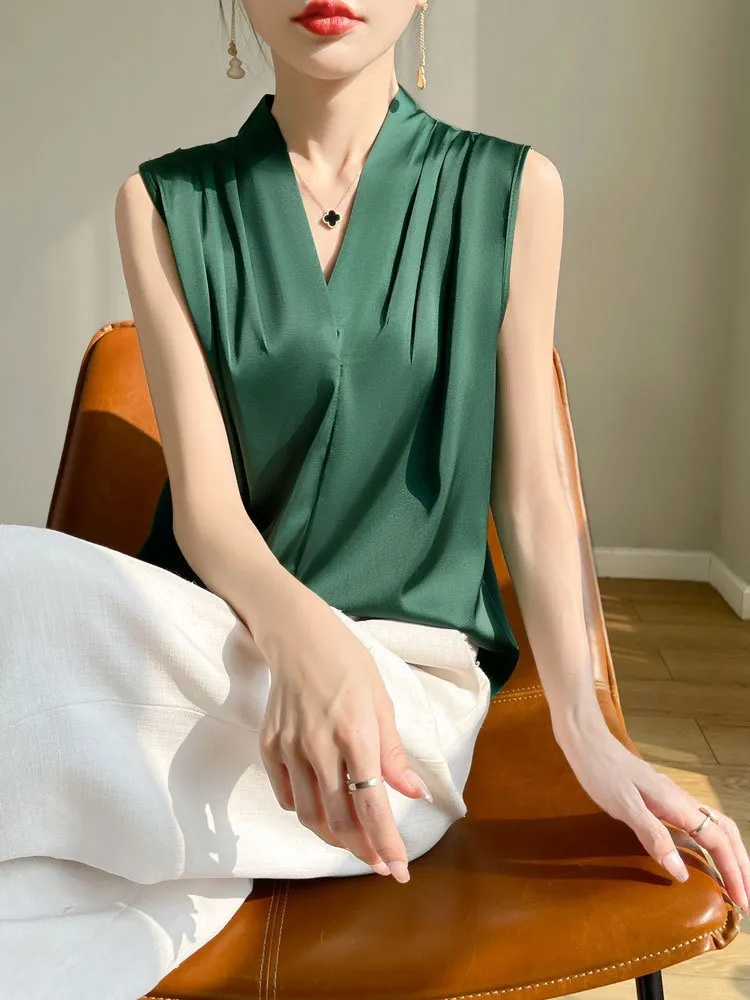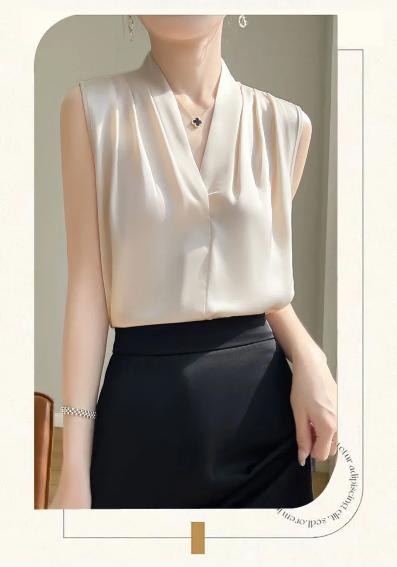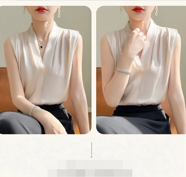 衣都精品- 新款修身V領寬肩短款內搭無袖上衣