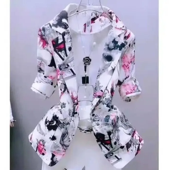 衣都精品- 新款薄款洋氣外搭開襟印花外套