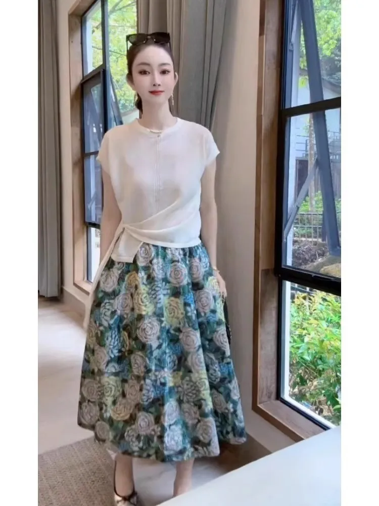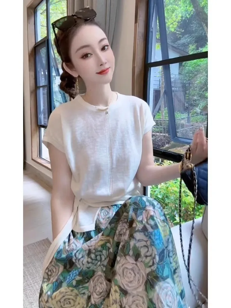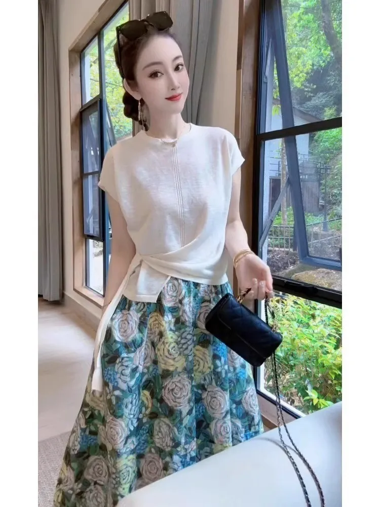 衣都精品- 新款洋氣時尚氣質白色上衣+半身裙兩件式套裝