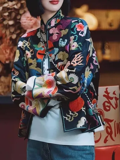 衣都精品- 新款中國風年輕款改良唐裝刺繡外套