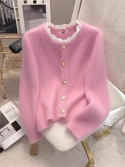 衣都精品- 新款法式復古寬鬆提花針織上衣