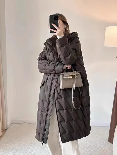 衣都精品- 新款寬鬆文藝長袖白鴨絨輕薄羽絨服外套