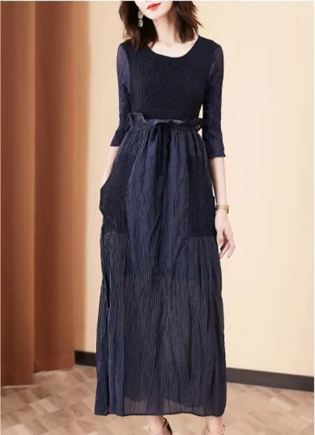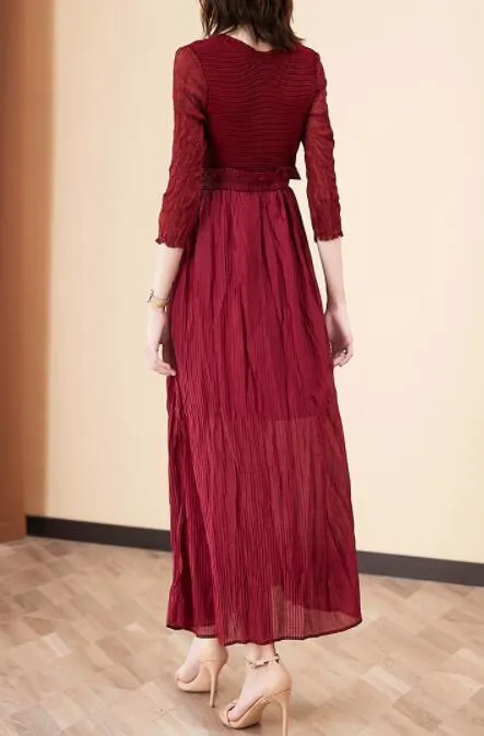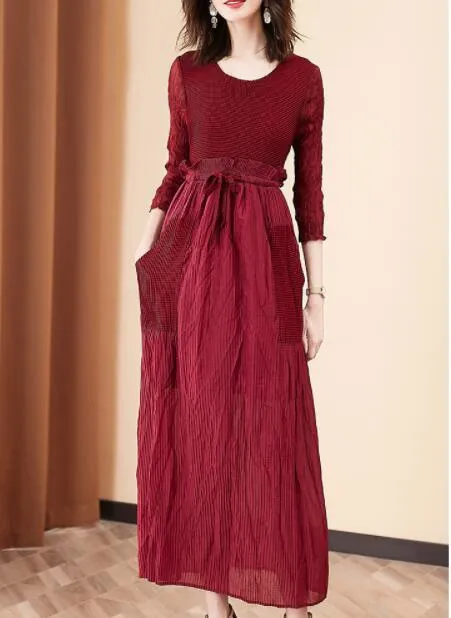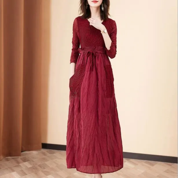 衣都精品- 2020秋季新款歐風收腰刺繡褶皺連衣裙