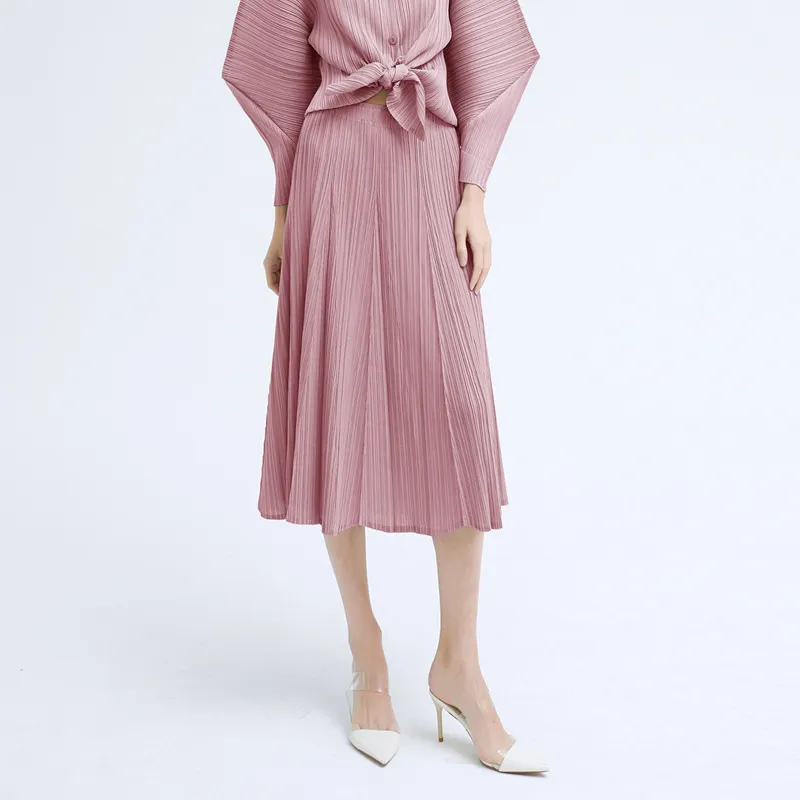 衣都精品- 2021秋季新款拼接百褶休閒純色半身裙