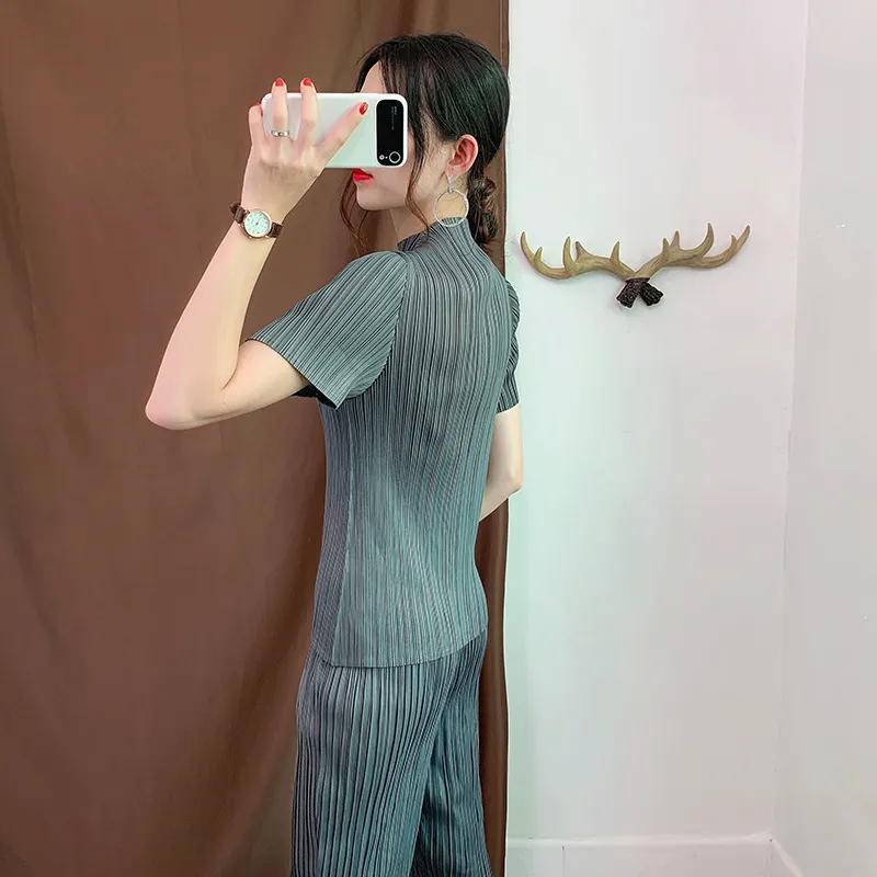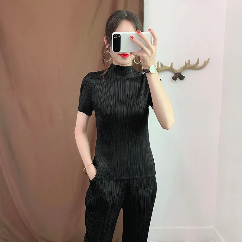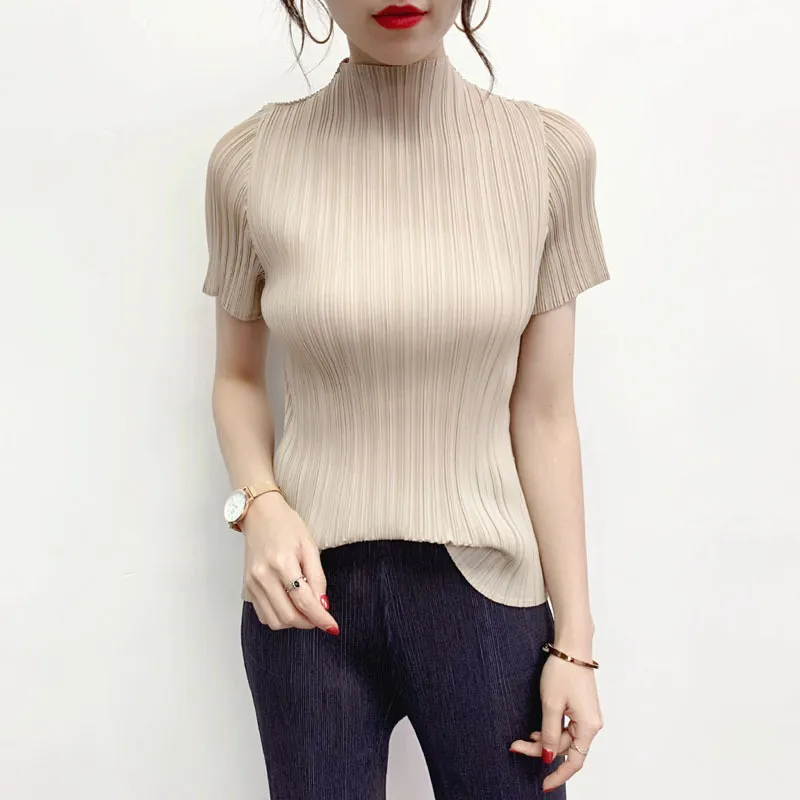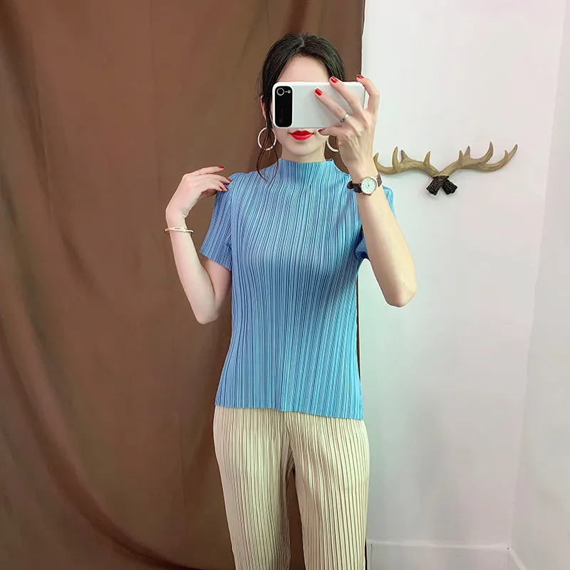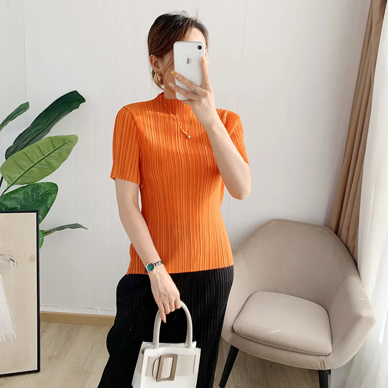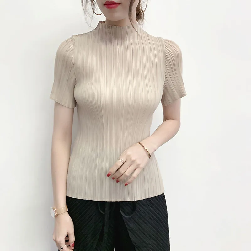 衣都精品- 2021秋季新款日系大碼打底短袖褶皺上衣