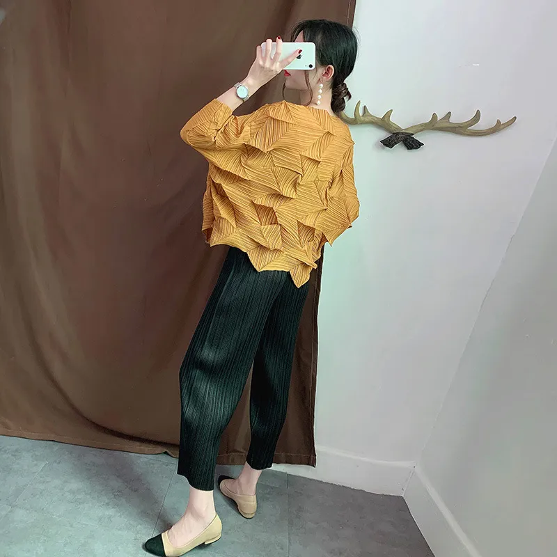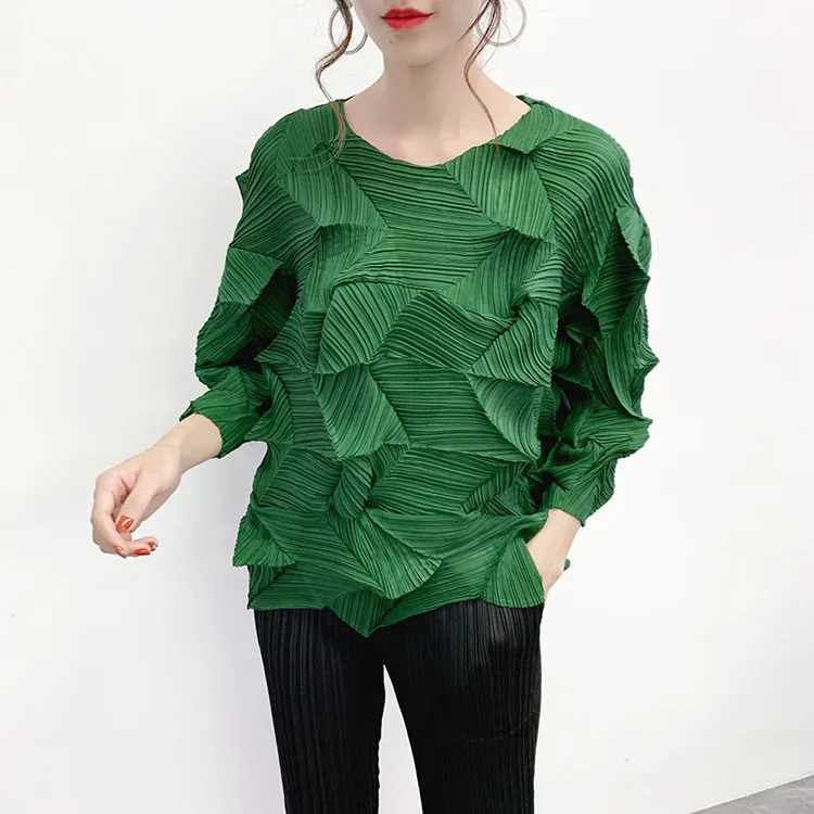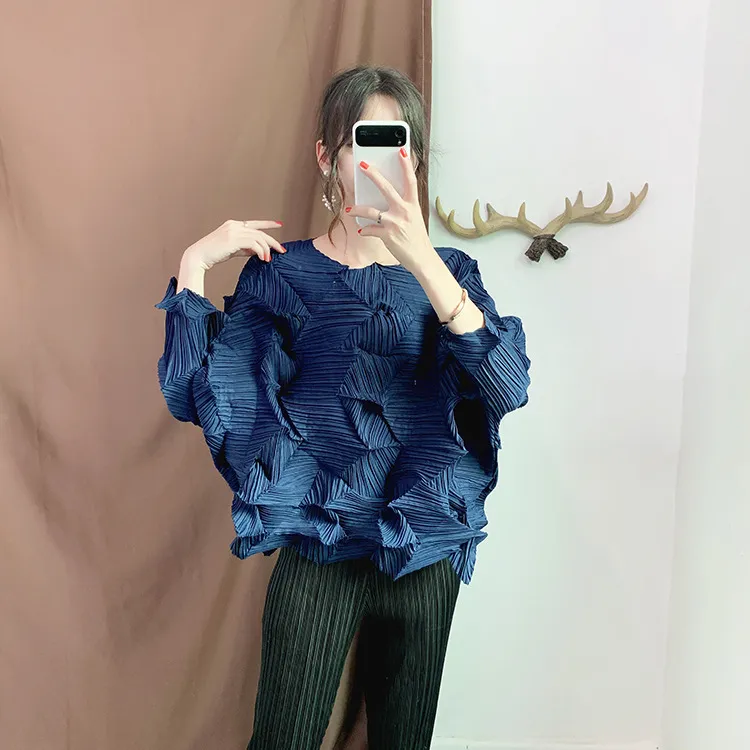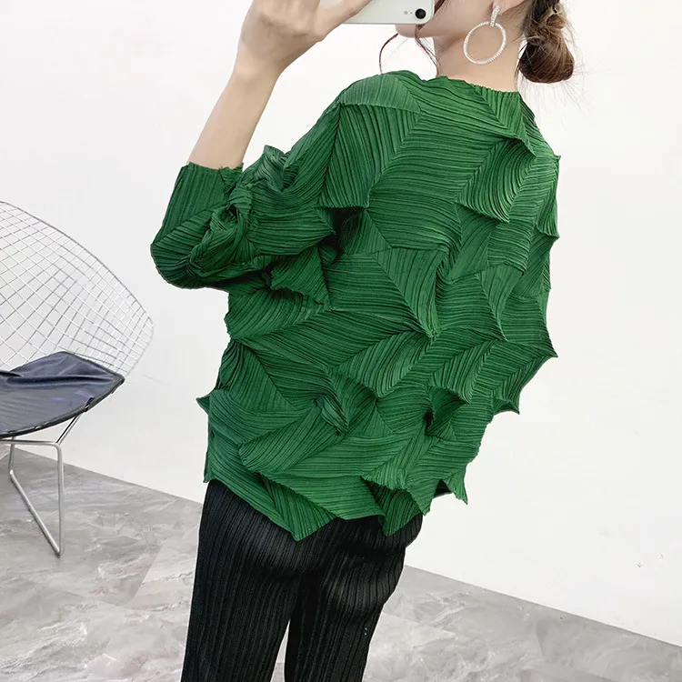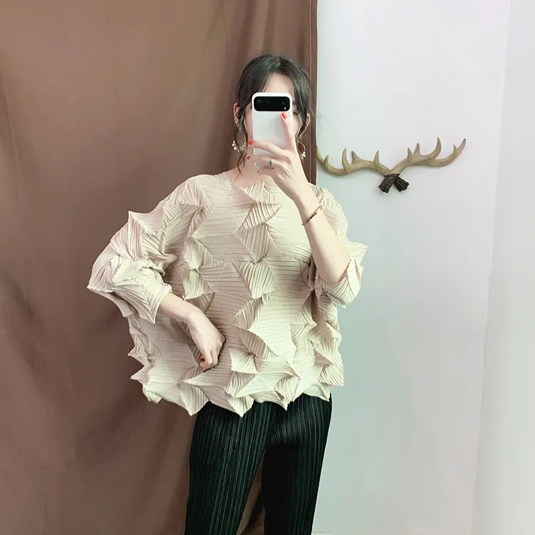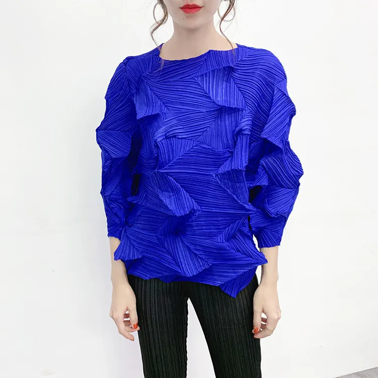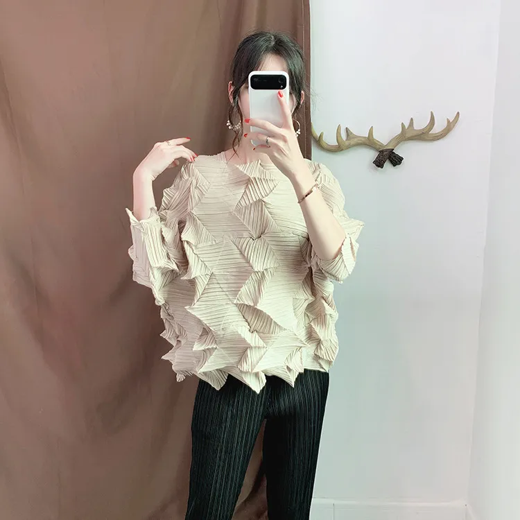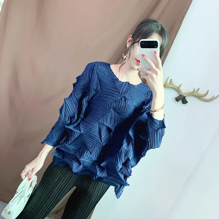 衣都精品- 2022春季新款七分袖不規則壓褶褶皺上衣