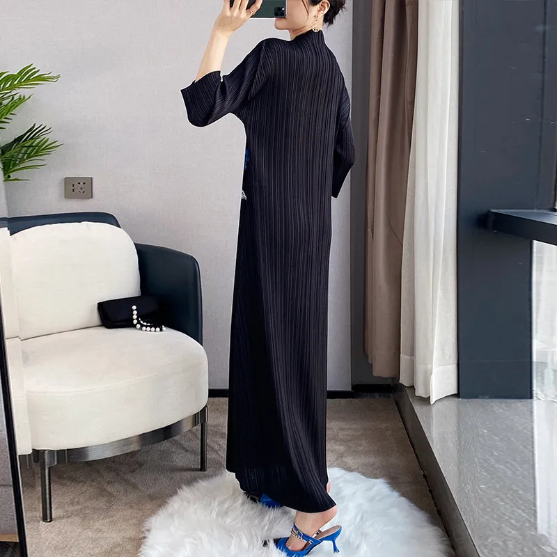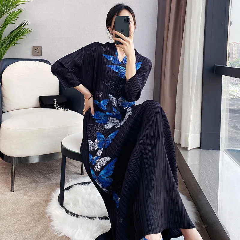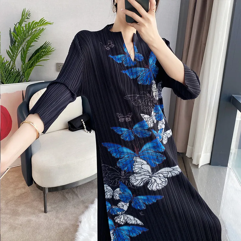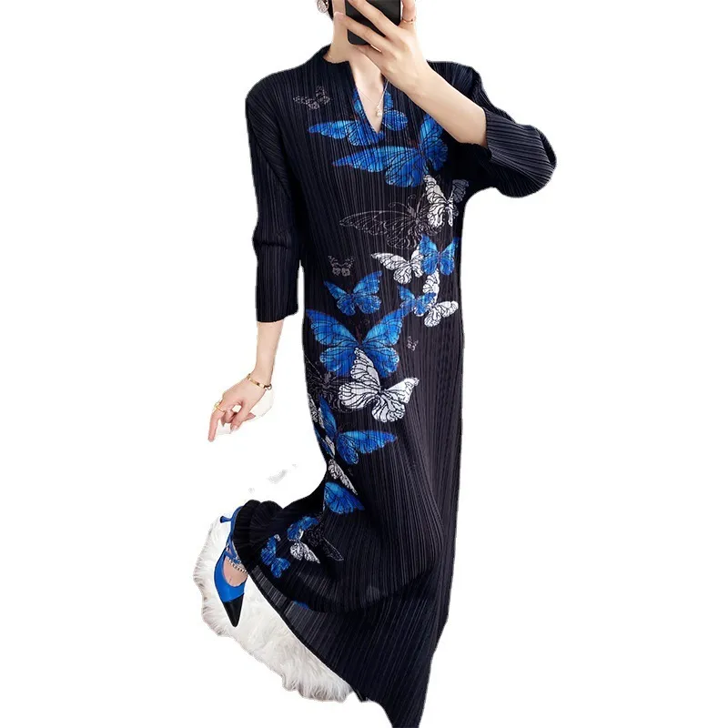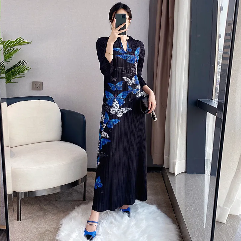 衣都精品- 2022春夏新款中國風修身V領旗袍款褶皺連衣裙