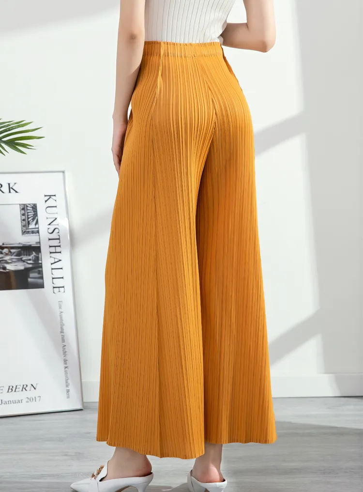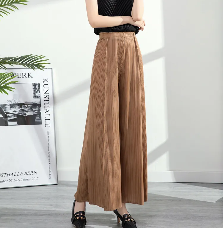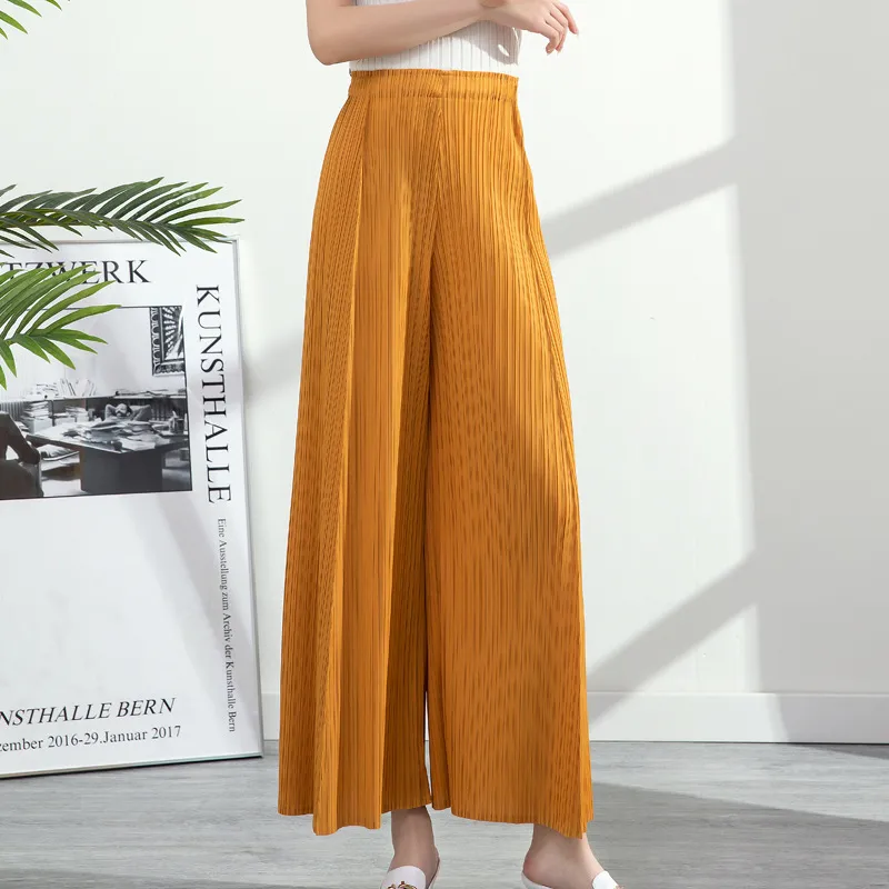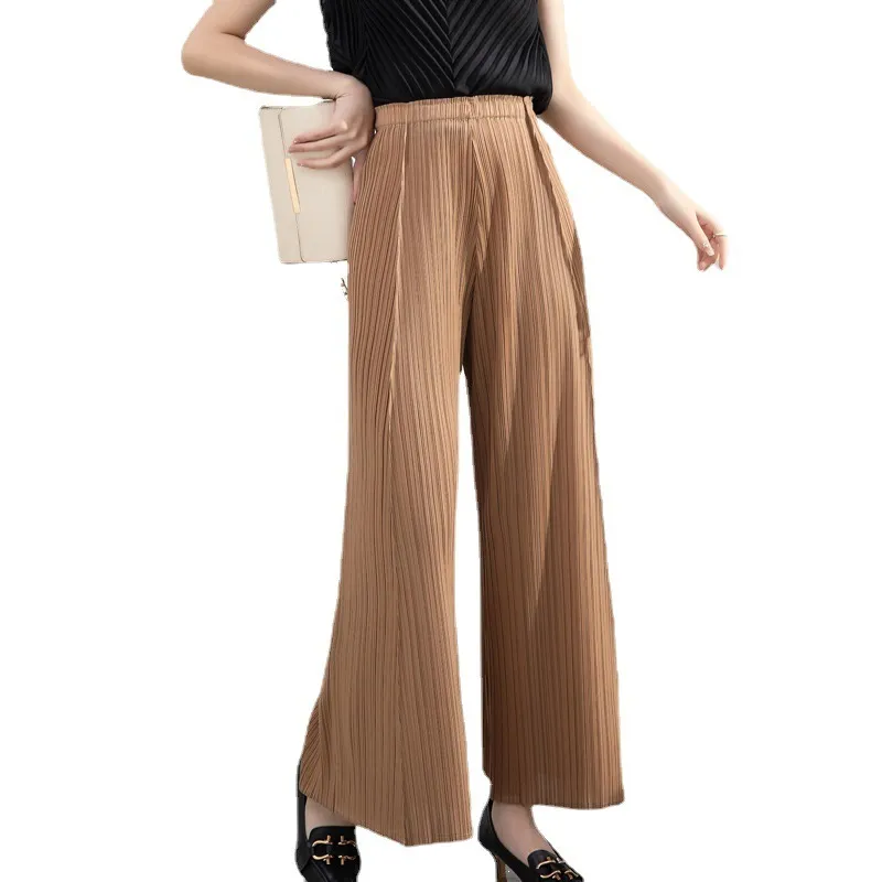 衣都精品- 2022春夏新款寬鬆直筒高腰垂墜感褶皺闊腿褲