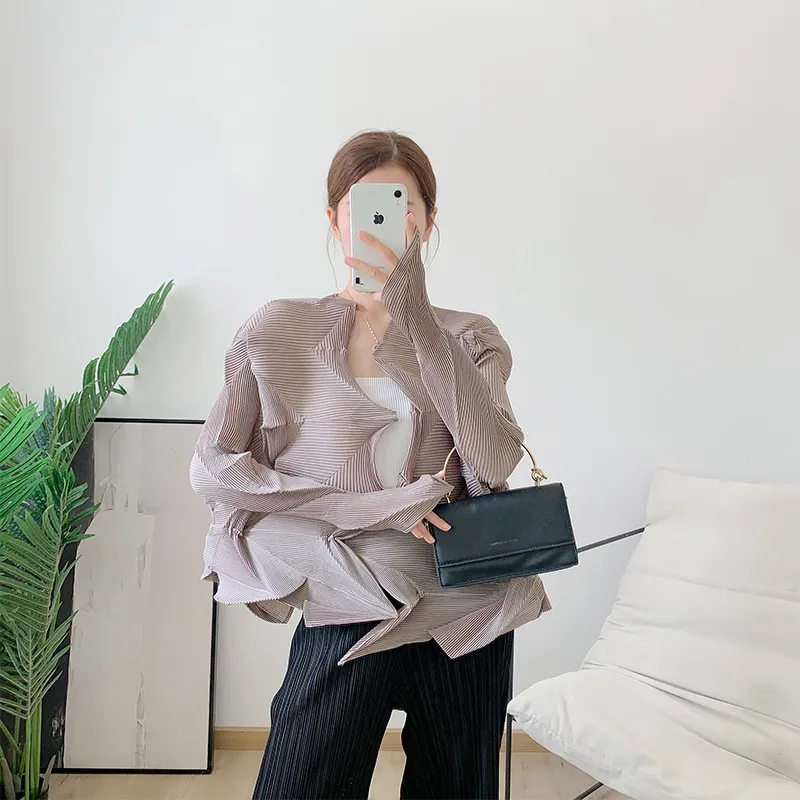 衣都精品- 2023新款手抓亂褶個性時尚薄款褶皺外套