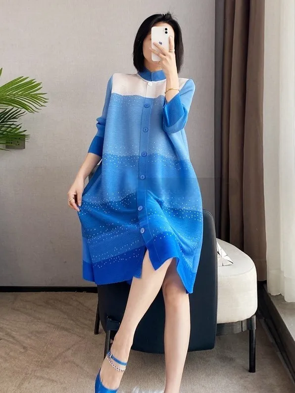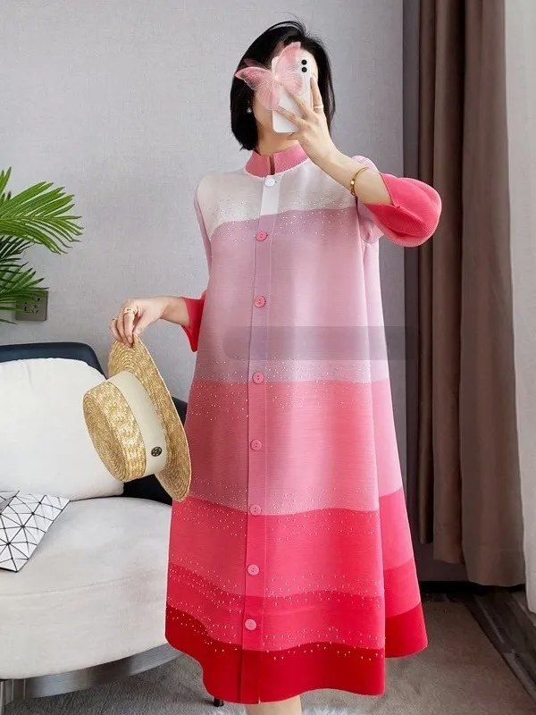 衣都精品- 2023夏季新款法式高級感燙鑽氣質褶皺連衣裙