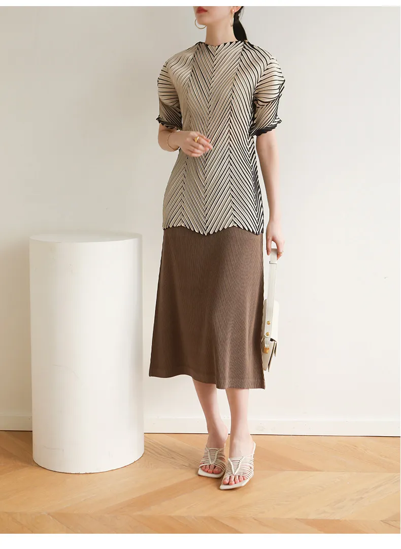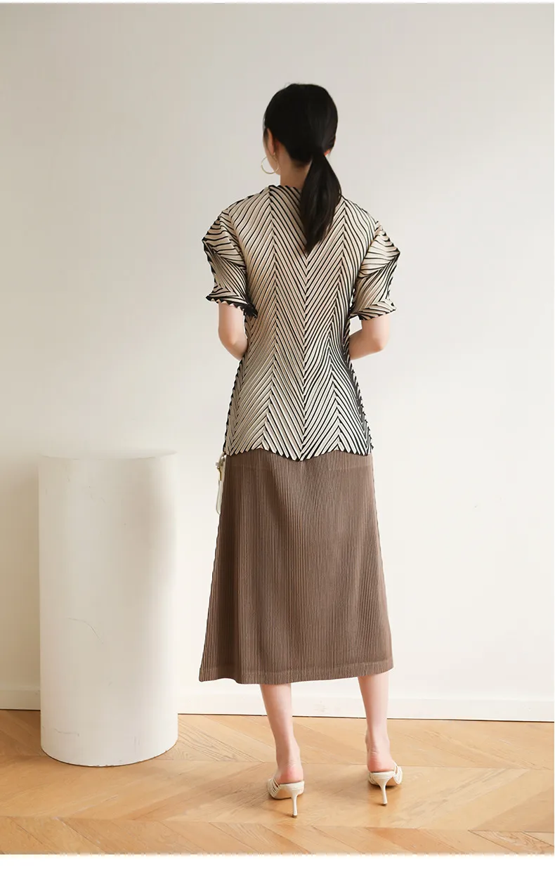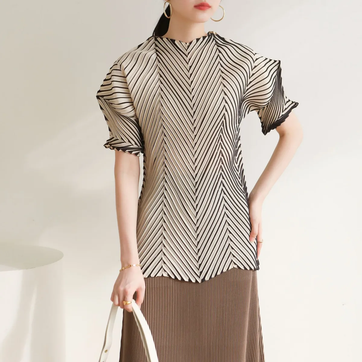 衣都精品- 2023新款设计感时尚印花百搭褶皺上衣