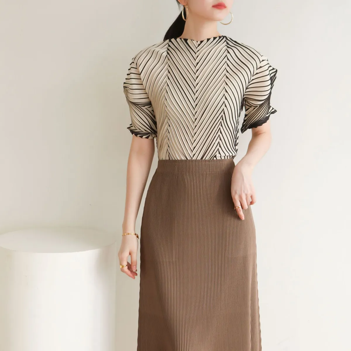 衣都精品- 2023新款套頭顯瘦大碼褶皺鑽石褶上衣